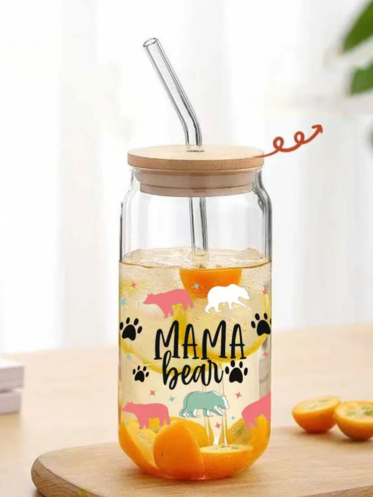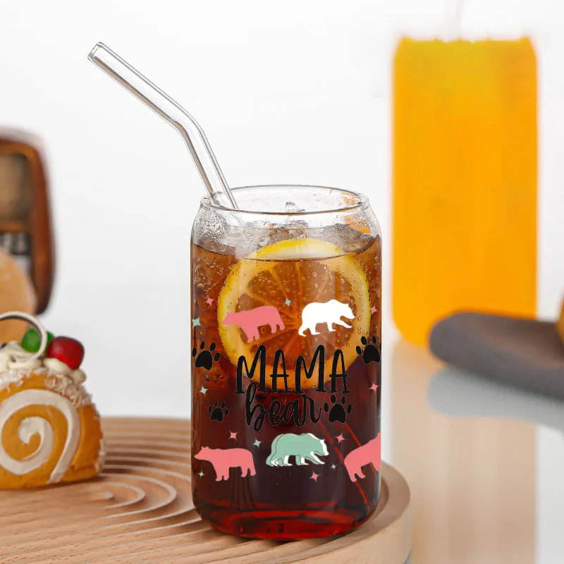MAMA Bean UV DTF Transfer Sticker Suitable for 16oz Glass Cup, DIY Wrap, Libbey Glass Cup, 1 Piece
